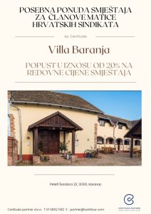 Hotel Vila Ružica Crikvenica (HRVATSKI UČITELJSKI DOM) članovima sindikata udruženih u Maticu te članovima njihove uže obitelji, ukoliko ostvaruju usluge smještaja zajedno s članom, osigurava 20% popusta na individualnu cijenu smještaja i mogućnost obročne otplate , sukladno ponudi koja vrijedi u trenutku rezervacije.